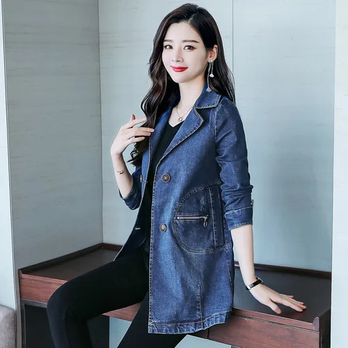 BEST Photo Shoot 2019 Spring And Autumn New Style Women's Long-Sleeve Korean-style Jeans Coat Mid-length