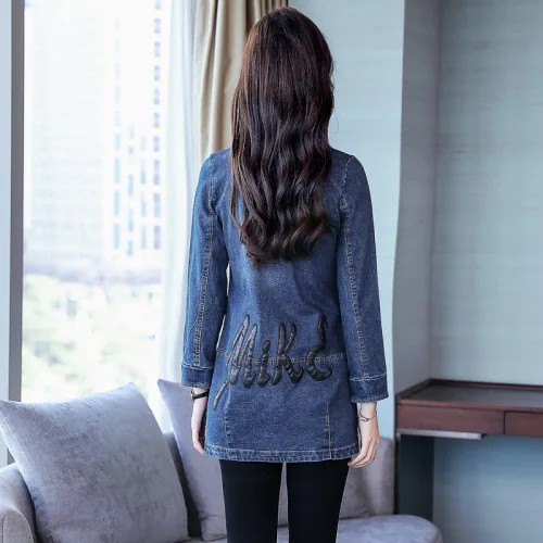 Photo Shoot 2019 Spring And Autumn New Style Women's Long-Sleeve Korean-style Jeans Coat Mid-length