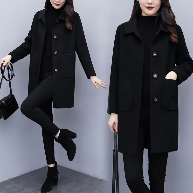 Best Seller Photo Shoot Thick Quilted 2019 Autumn & Winter New Style Woolen Jacket Women's Mid-length Overcoat