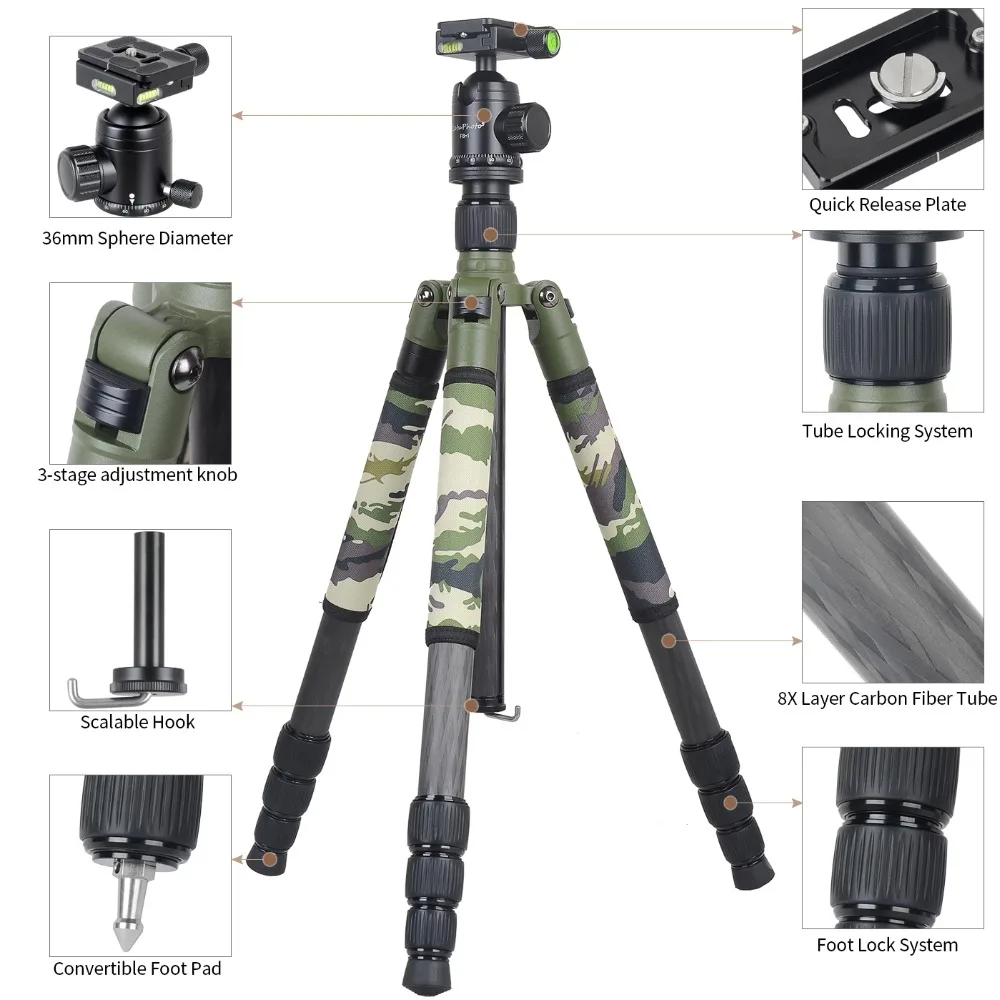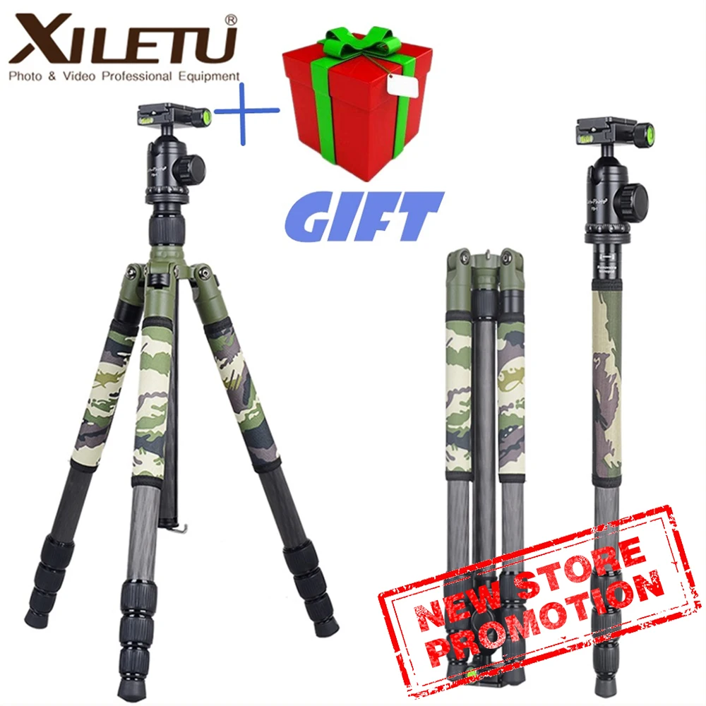 BEST SELLER XILETU T284C+FB1 Camouflage Carbon Fiber Tripod Professional Hidden Outdoor Shooting for Digital DS