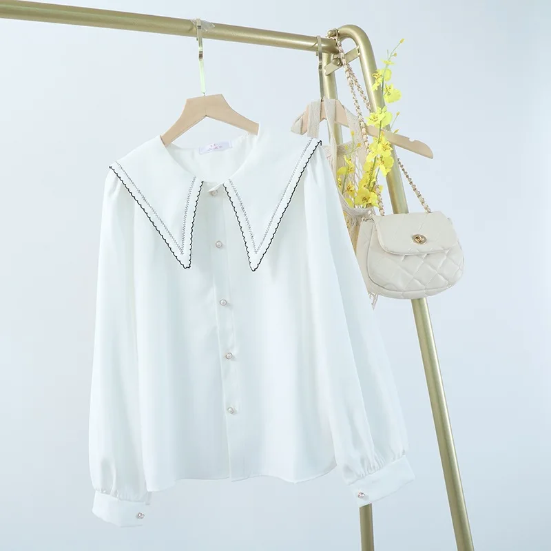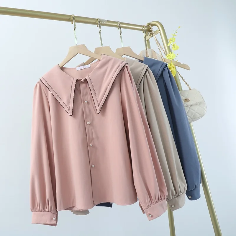 Review Top Photo Shoot ~ 2204 Navy Collar Shirt WOMEN'S Dress by Age Sweet College Style Base Shirt CHIC Short