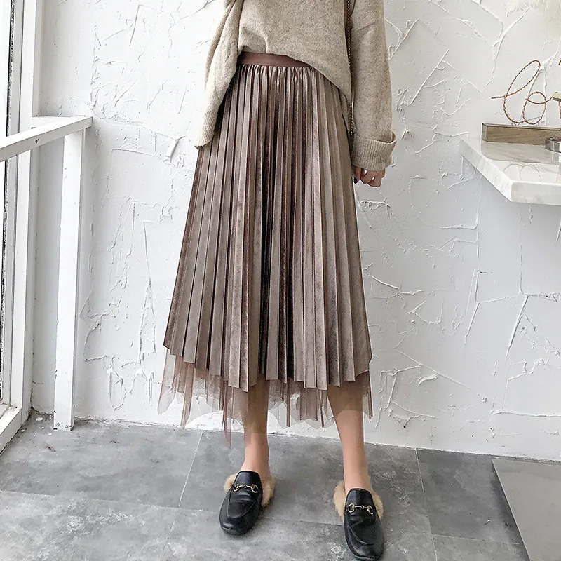 Photo Shoot 2019 Autumn And Winter New Style Reversible Gold Velvet Skirt Women's High-waisted Gauz
